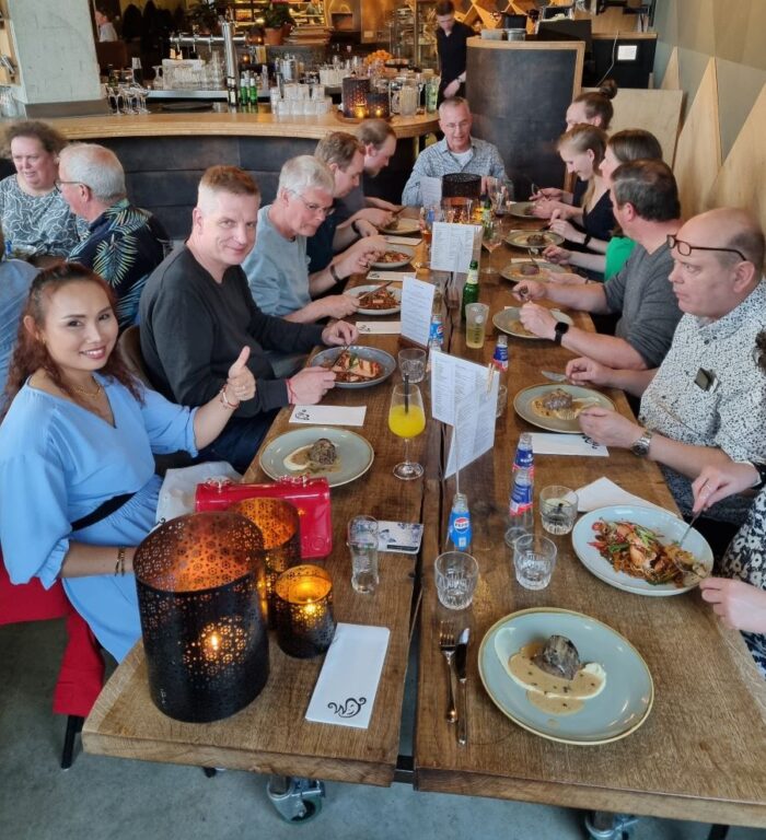 Dit heugelijke feit is op passende wijze gevierd: op een schitterende zonnige dag een leuke activiteit en een heerlijk diner voor alle medewerkers en partners, waarbij de directie in de bloemetjes is gezet!
